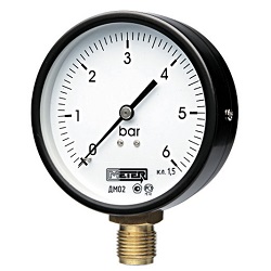 Манометр ДМ02 (Мановакуумметр ДА02, Вакуумметр ДВ02) в стандартном исполнении и с диаметром корпуса 100 мм от отечественного производителя ООО «МЕТЕР» относится к общетехническим манометрам, которые используют для измерения давлений газообразных и жидких сред с максимальной температурой +160°C: бензин, вода, дизельное топливо, газ, керосин, пар, масло. Данный прибор имеет радиальное присоединение (штуцер снизу), приборное стекло, класс точности 1,5 и пылевлагозащищенность IP40. Корпус выполнен из стали черного цвета. Не подходит в работе с агрессивными, вязкими и кристаллизующимися рабочими средами. Применяется во многих сферах промышленности, таких как нефтяная, газовая, химическая, но популярностью пользуется именно в сфере жилищно-коммунального хозяйства.